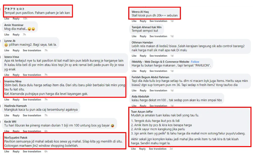 As Azura’s post went viral, many people commented how the price isn’t surprising, given the location and the mall’s rental fee. A few others also shared their experience of paying a high amount after eating at the mall’s food court. Some comments even shared some advice when ordering yong tau foo, stating that the choice is up to the individual ordering, so be mindful when choosing.