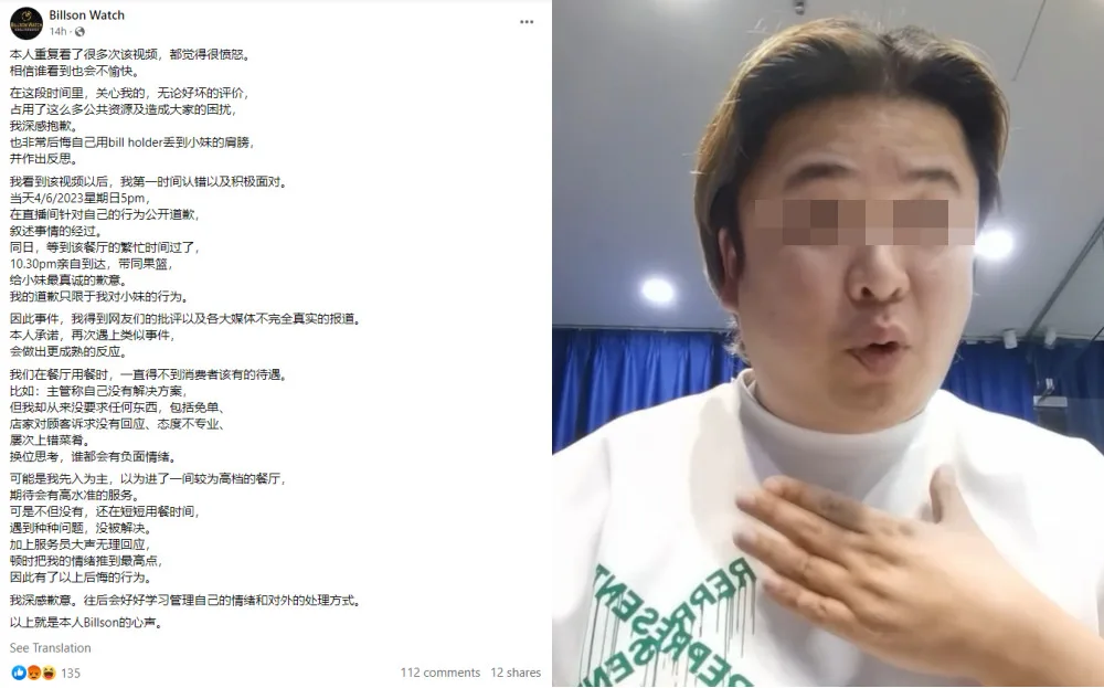 Yesterday (7th June), the customer took to his Facebook to officially put the matter to rest. He agreed that his actions were out of hand and regretful. “After I saw the video, I immediately admitted my mistake and faced it positively,” he stated. However, he also clarified that his apology had only been towards the female staff. “I promise that if I encounter similar incident again, I will respond more maturely,” he added.