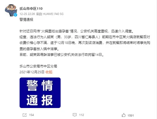 Recently, a hotpot restaurant in Leshan City, Sichuan Province had their reputation jeopardized by a customer. Said customer claimed he had found a condom inside his dish.