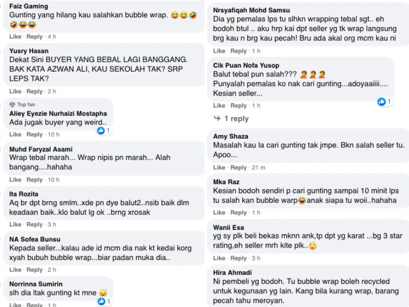 Many commentators flooded the replies space on the entertainment site’s FB page with negative remarks towards the customer for her inconsiderate and selfish traits. Others also expressed their sympathy towards the seller, as the low rating left by the customer might affect the seller’s reputation.