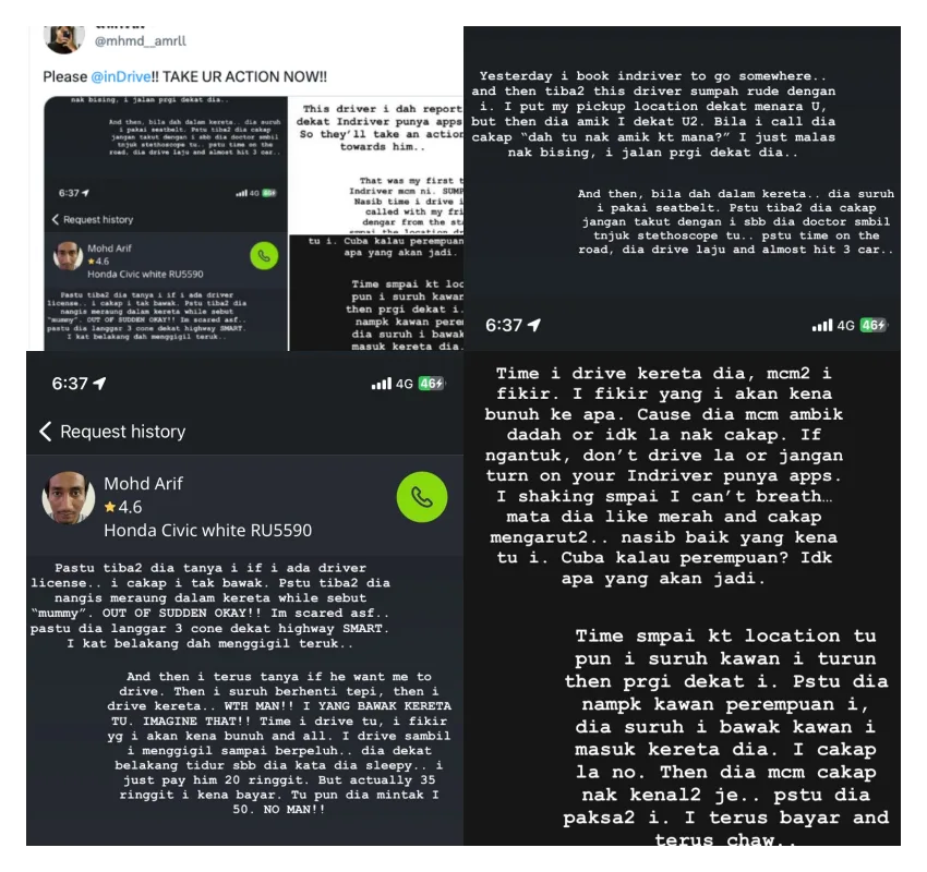 “As I was driving the car, I started to fear that he might murder me or something. I then realised he was sleeping at the back,” the inDriver user wrote. Once they arrived at the destination, Amirul paid the driver RM20 instead of RM35 after the horrible experience but the driver had the audacity to request RM50. The driver also apparently tried to invite the customer’s female friend, who was there to pick him up, into his car.