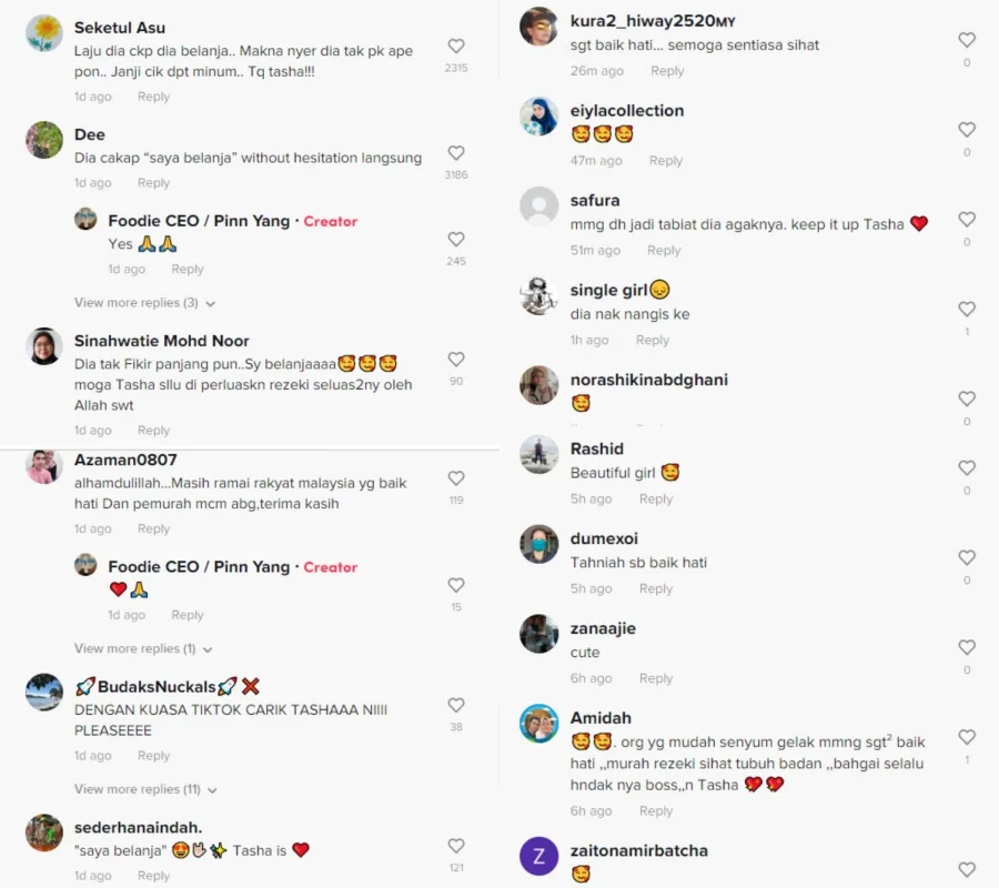 To his surprise, the cashier name Tasha was willing to help pay for the drink without any hesitation. The content creator even asked if she was serious to which she insisted that she’ll treat him. Before she could even do anything, the TikToker handed her several RM50 notes and told her that she passed his test.