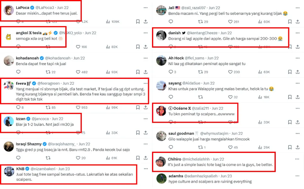 A scroll through an online marketplace shows the free tote bag getting resold for up to thousands of Ringgit. However, it’s worth noting that some sellers may be trolling with their listings and are merely making fun of those who are seriously reselling the totes. Nevertheless, these listings have caught the attention of many netizens, who criticised the sellers for trying to make a profit from a free item. They also urged the public not to buy from these sellers, saying the bag should never be worth such prices.