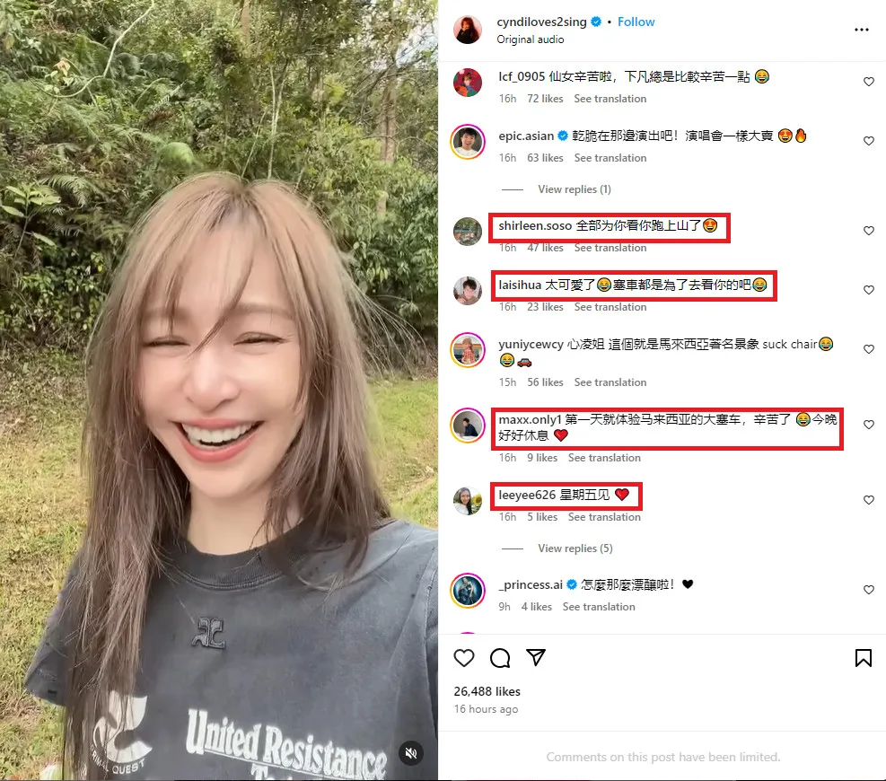 The “Taiwanese Sweetheart” was apparently caught off guard yesterday (20th March) by a horrendous traffic jam when she was going up to Resorts World Genting. The sight left her amazed and fans found humour in Cyndi’s reaction to it, all recorded on her Instagram, of course.