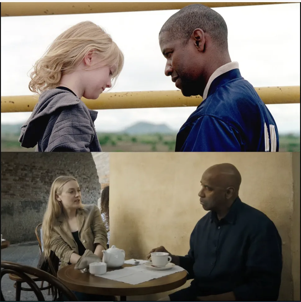 A: I worked with Denzel when I was nine years old on “Man on Fire” and his kids are really good friends of mine. I went to High School with one of his daughters and she is one of my best friends. I feel a deep connection to the whole family and to Denzel – I’m a massive fan of his – and so anything that Denzel is in I’m interested in seeing. I’m also a fan of Antoine’s work and I love movies like “Equalizer”. I love Robert McCall, this mysterious figure who saves people and helps people and has a back-story but is still a mystery. You just feel safe and protected when you are watching this character, you know, and I think that’s the magic of Denzel too. He’s such a powerful figure but also a deeply connected and emotional actor. He just brings so much to every character he plays and with this character in particular, there is a lot of pain in Robert McCall, and you see him working through that by helping people and doing the unexpected. And so I just love Denzel and I love anything he does and so that always leads me to any movie that he is in. I saw the first two “Equalizer” films and I was definitely a fan long before I was part of this one.