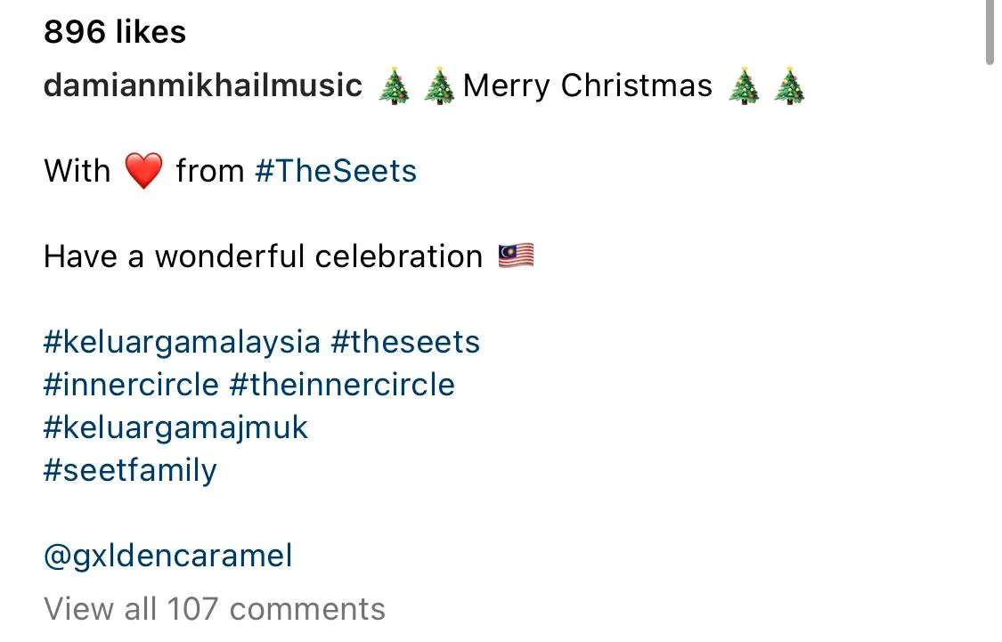 As we are all well aware, Christmas falls on the 25th of December every year and it is one of the most joyous holidays in the country; the Christmas sales held by stores, the sparkly and beautiful Christmas lights and decorations put up everywhere around town, and not to forget, the holiday music! So, Damian Mikhail, a member of the R&B musical group, V.E., took the opportunity to post a Christmas family picture on Instagram and to wish everyone a happy Christmas.