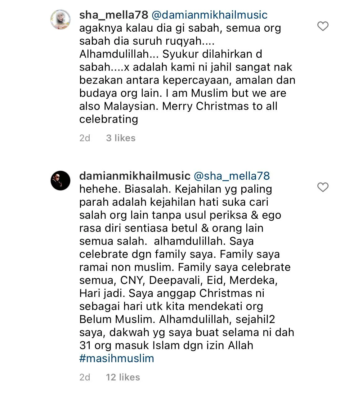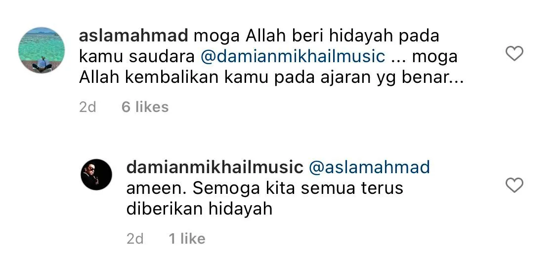 One netizen commented “May Allah grant you his guidance, dear brother Damian. May Allah brings you back to the right (path),” and he calmly responded with, “Ameen, may we always be granted his guidance.” While another netizen, commented “(I) hope you are aware of your ignorance and repent,” to which Damian schooled him regarding the issue.