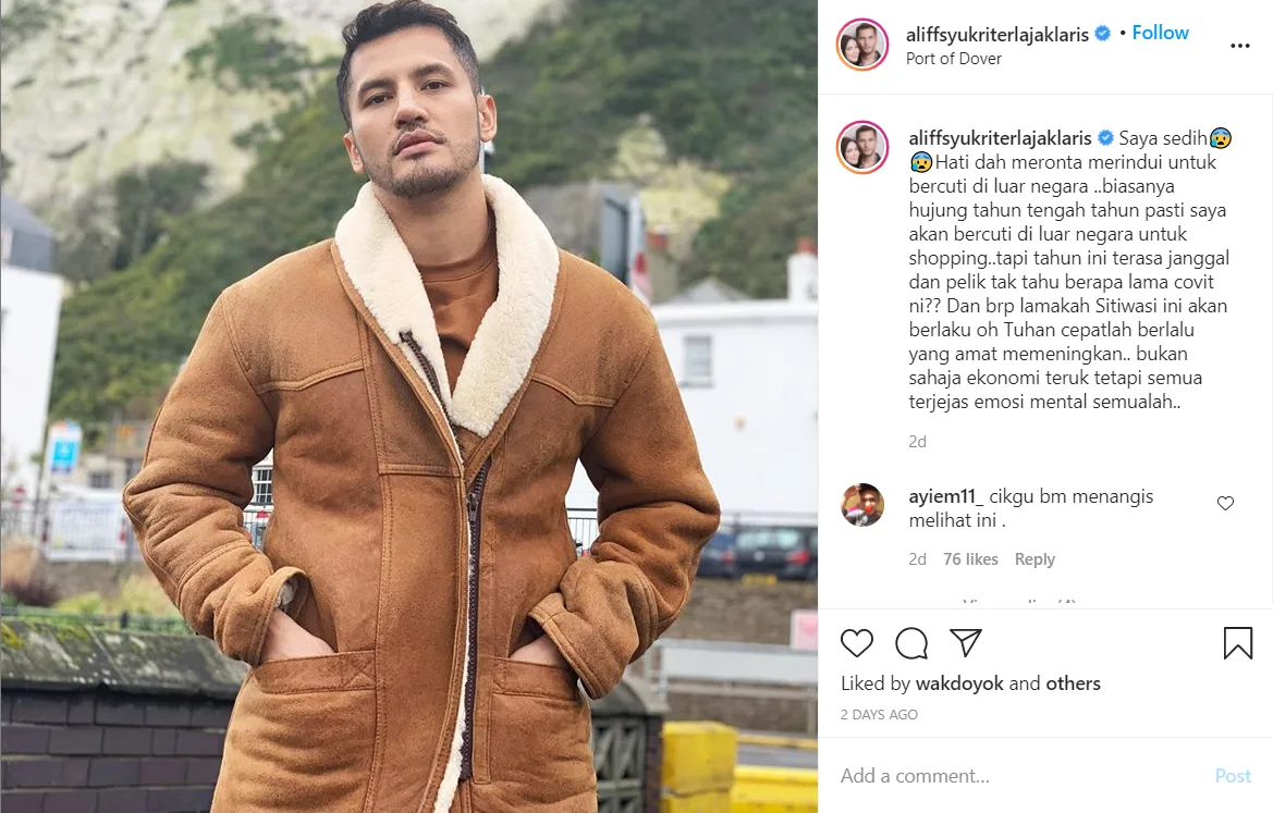 The cosmetic entrepreneur took it to his Instagram page, @aliffsyukriterlajaklaris, to share his distressed feelings following the Covid-19 travel ban. He explained that he yearns to have a vacation abroad because he usually does so every end of the year.