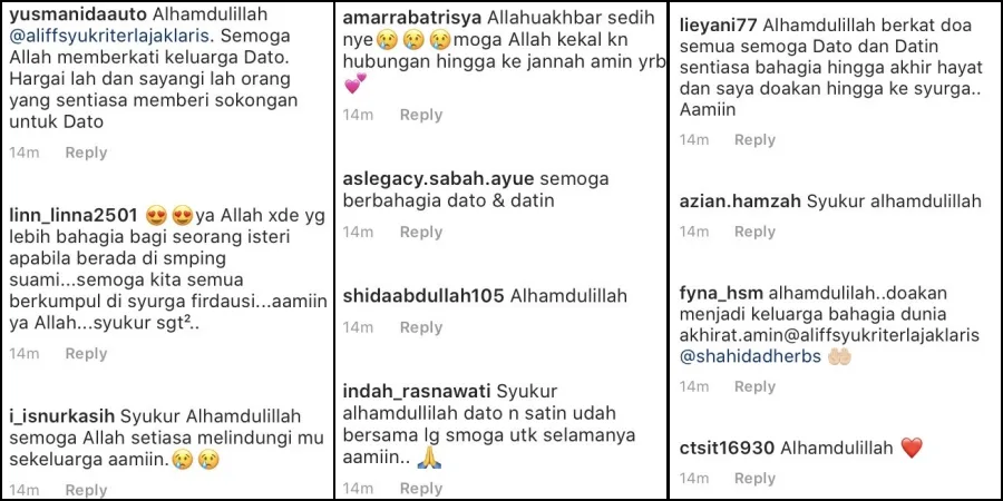 For the past couple of months, both Dato’ Aliff and Datin Shahida were not seen pictured together, leaving everyone left with curiousity. To top it off, even Dato’ Aliff’s mother, Bonda Rozita gave hints to everyone about her son’s problems on her official Instagram account through her postings.