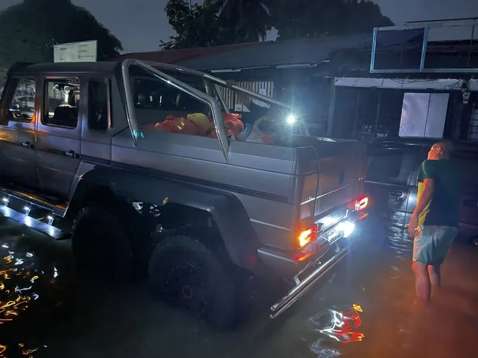 Netizens have been reporting seeing the expensive six-wheeler slogging through water with supplies in the back. A few have even seen him braving the floods to transport victims to their destinations. The vehicle is certainly made for challenging situations and this is as challenging as it gets!