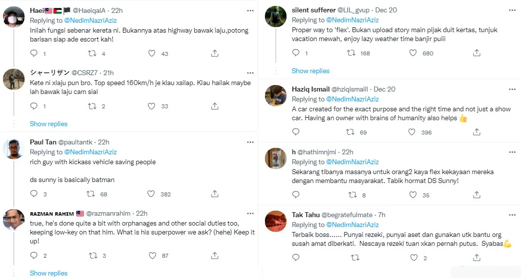 Many netizens have been praising Dato Seri Sunny for his selfless actions. Plenty of them have also been leaving thank yous and heart emojis in his Instagram comments section to show their appreciation. Others have observed that the Dato cares more about human lives than his things. “Real rich guy doesn’t mind if his pricey ride gets dirty,” one comment read. “What a chad.”