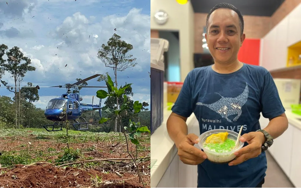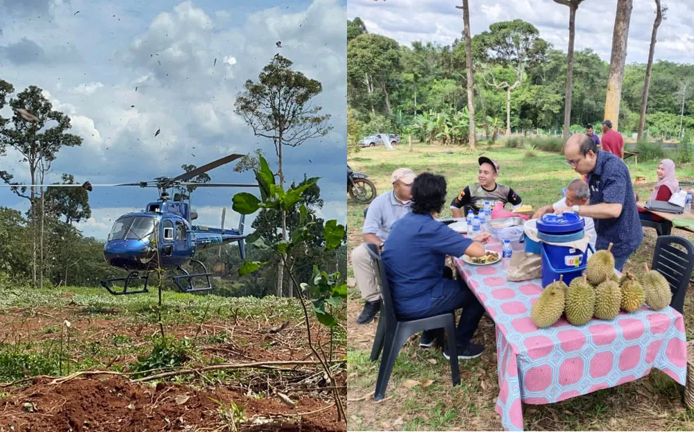 For most of us, simply buying durians from roadside stalls or enjoying it at your local durian shop is enough. However, a VVIP decided to go the extra mile to taste durians from Segamat. The VVIP not only booked a durian buffet at a durian farm in Segamat, he flew himself and a few friends there via a helicopter!