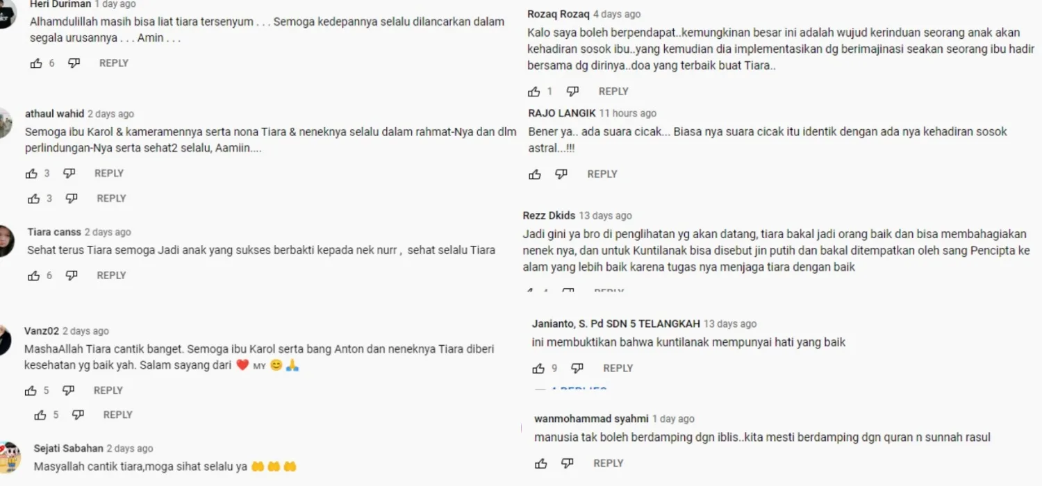 Koral insisted that the child is human but special and by special, she means that Tiara has a ‘guardian’ looking after her other than Nenek Nur. The guardian, who they refer to as Tiara’s “adoptive mother” is said to resemble a Pontianak according to the Indonesian YouTuber. In one recent video, the girl revealed that her “mother” no longer visits her at night but she does dream of her from time to time, adding that her “mother” would sometimes cry from missing her.