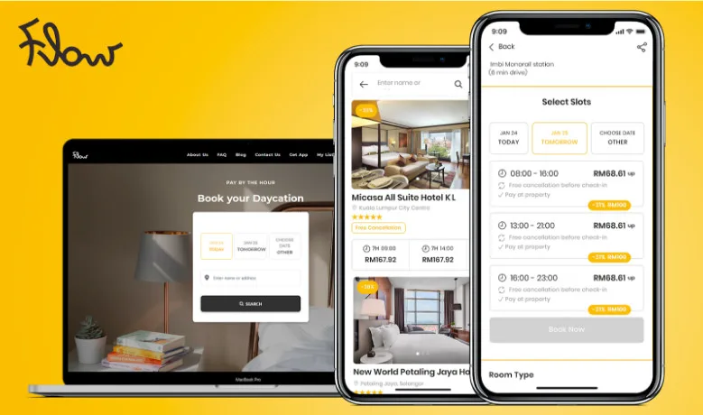 Through the Flow app, users can book 3- to 5-star hotel rooms on an hourly basis at a fraction of the regular cost at over 40 hotels within Klang Valley. Hotel rooms available on Flow are available between the price range of RM40 – RM300.