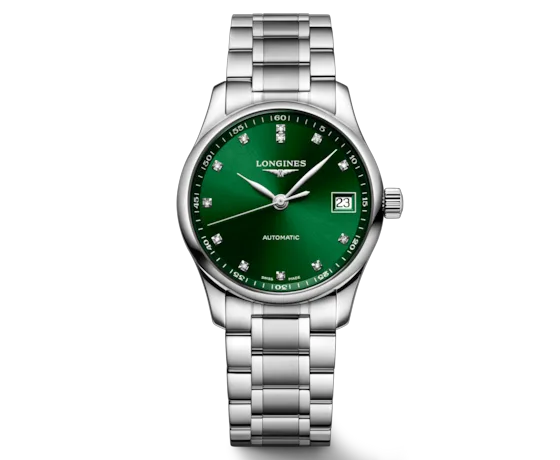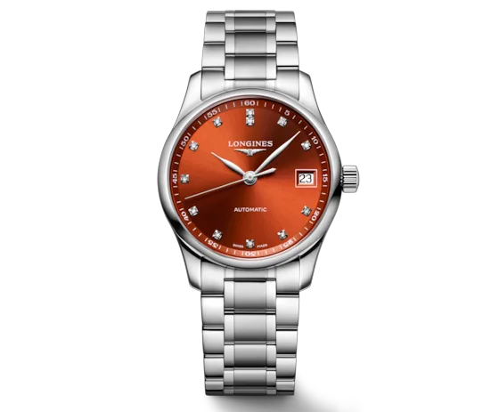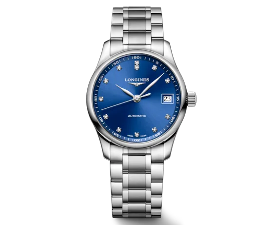 On the round steel case of The Longines Master Collection models, a sapphire glass with multi-layer internal and external anti-reflective treatment preserves the fineness of the dial. The look is classic, with silvered polished hands and twelve diamond hour-markers as they sweep over them.
