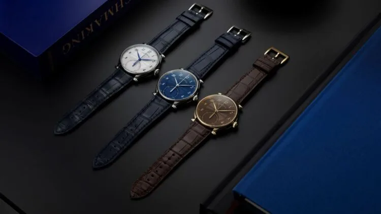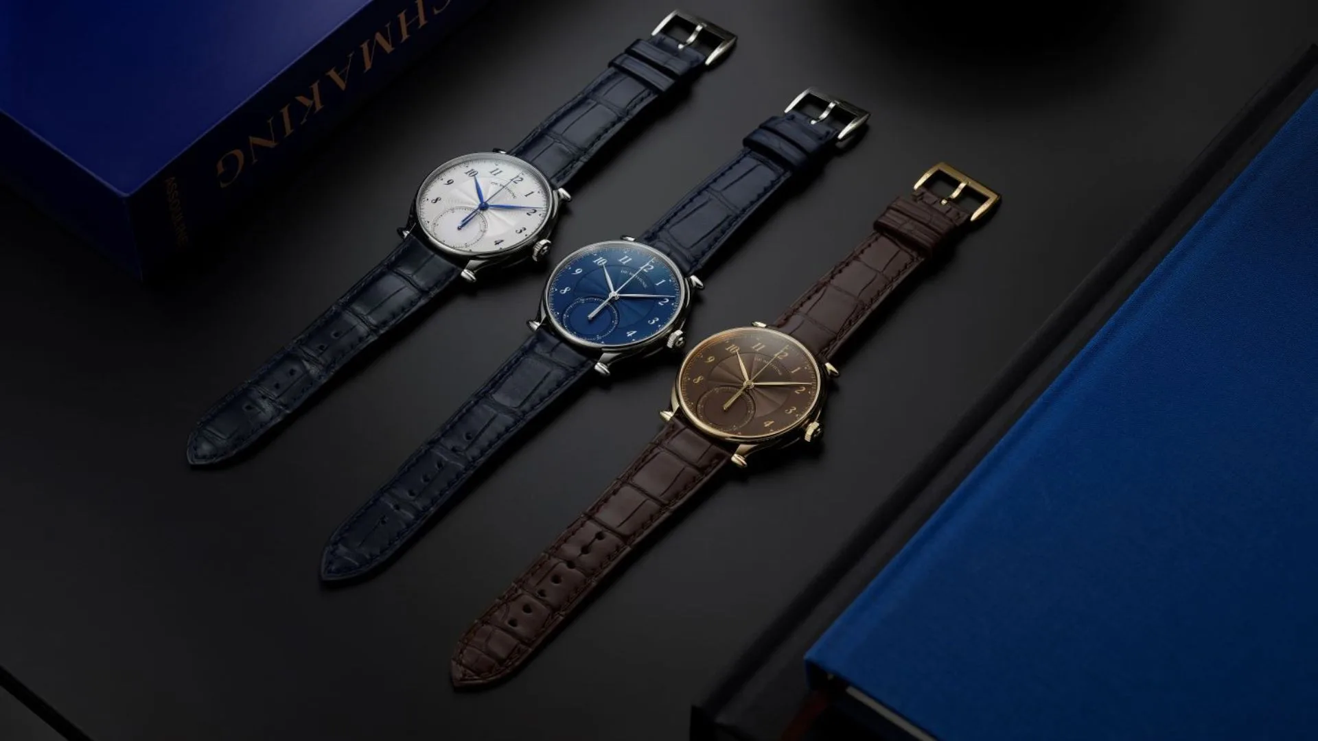 Previously, the DE Eight was only available in a titanium-clad, silver-dial variation with blue hands and a black leather strap. Now, the wristwatch is available in a deep royal blue dial encased in white gold, while the other version has a luxuriously chocolate-hued dial in a yellow gold case.