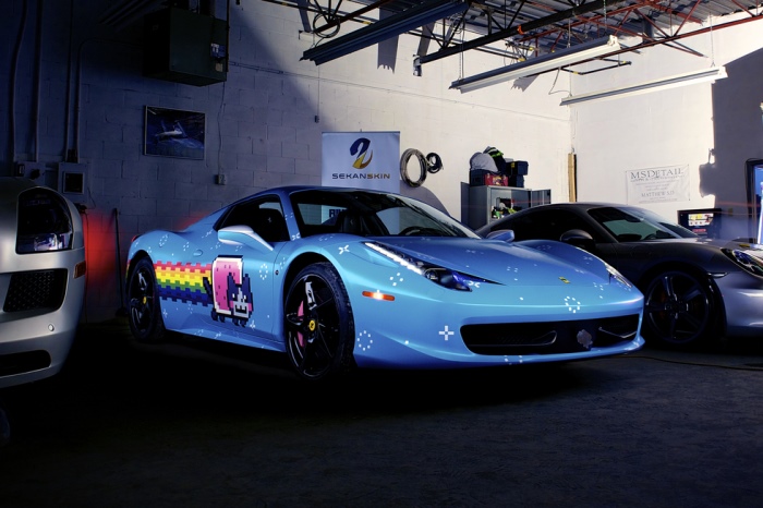The owner of the “Purrari”, of course, is none other than Joel Zimmerman, otherwise known as deadmau5 (pronounced as “dead mouse” and not “dead mau five”, by the way). He recently posted his Nyan Car-covered Ferrari458 Italia on Craigslist, of all places, and the going price starts at a perfectly reasonable $380,000.