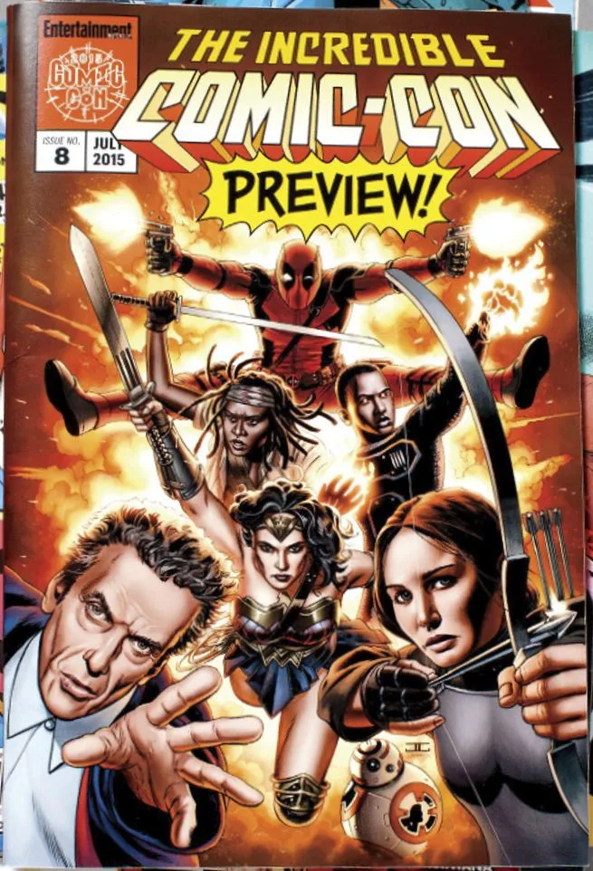 After debuting an official still from “Deadpool”, the spin-off film for the “X-Men” film series, EW uncovered its special Comic-Con issue featuring Ryan Reynolds as the Merc with the Mouth on 3rd July (Saturday). The magazine also unveiled another international cover where the iconic characters from Marvel, DC, The Star Wars and Doctor Who Universes were assembled on one single page. The cover was all illustrated by superstar comics artist John Cassaday (of “Star Wars” fame).