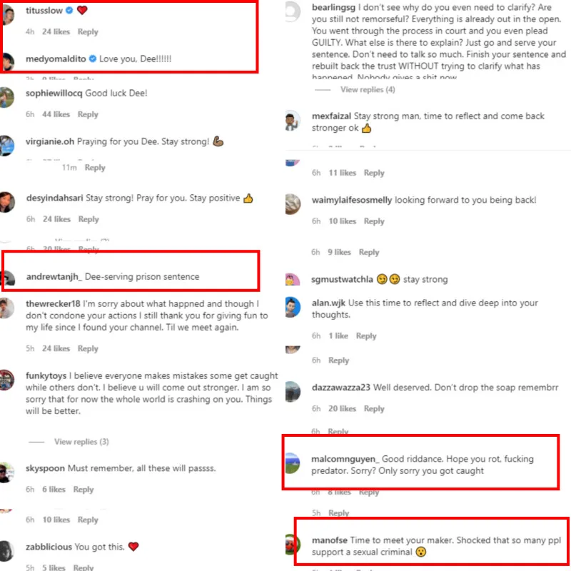 Fans and also some of his content creator friends commented on his post with most saying they’ll miss him and wish for him to stay strong during this difficult time. However there were also those who were glad that he’ll be serving his time and made light of his situation.
