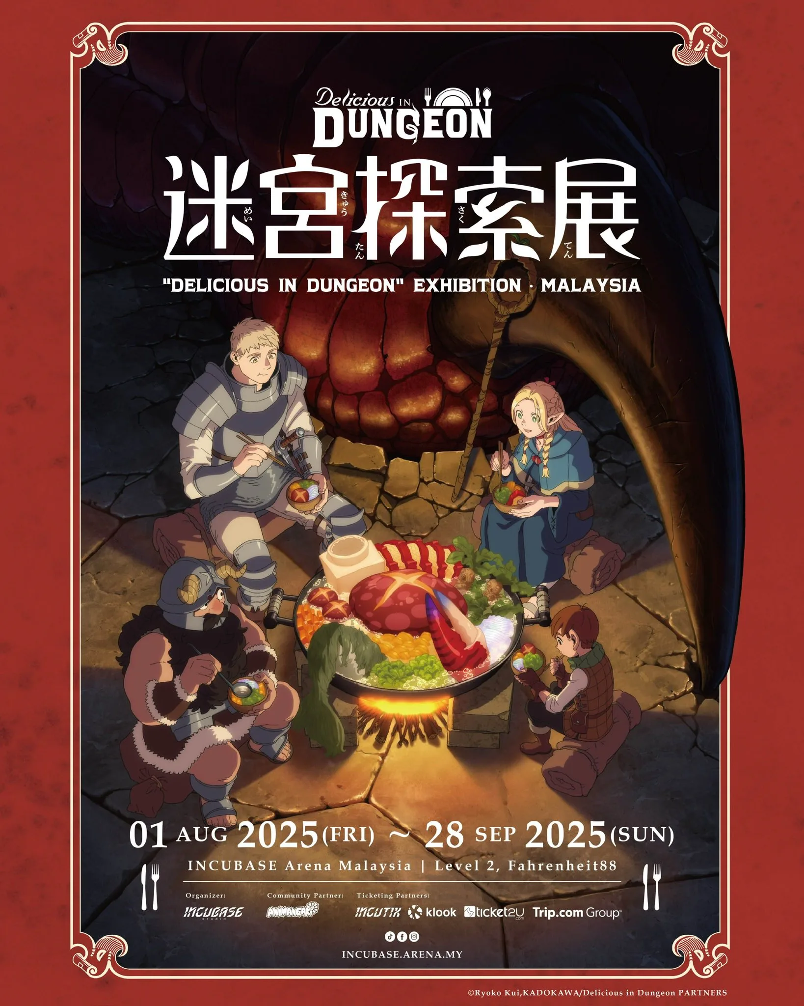 For more information and updates for the Exhibition, head to INCUBASE Arena’s official social media pages. Don’t miss your chance to experience the world of “Delicious in Dungeon” like never before!