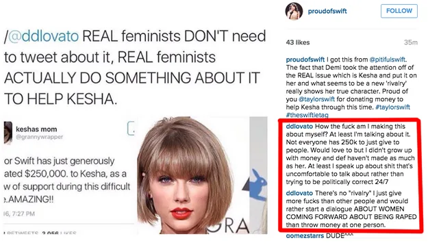 The “Stone Cold” diva previously argued that Swift took the wrong approach in helping Kesha against Dr. Luke. Instead of just donating a US$250,000 cheque in support of Kesha’s legal battle, Lovato felt that Swift should have been more vocal, saying, “take something to Capitol Hill or actually speak out about something and then I’ll be impressed.”