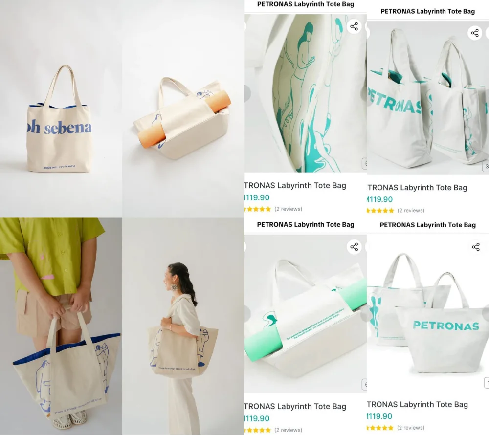 The tweet alleged that Petronas had copied the design for their Labyrinth Tote Bag from Oh Sebenar’s Room Tour Bag. For your information, Oh Sebenar is a local business based in Kuala Lumpur and founded by Nadine Jasmine in 2018. The Room Tour tote bag was released in 2022 and was a collaboration with local design studio Miso Rama.