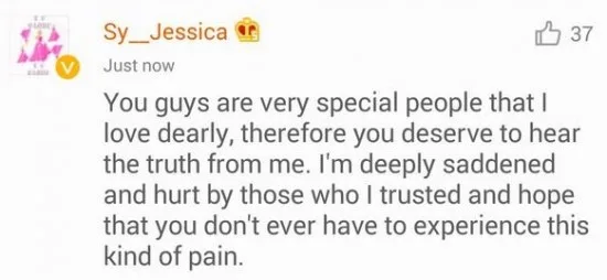 This post below, under Jessica’s user handle, also popped up in the comments section in reply to her earlier Weibo post, generating much concern:
