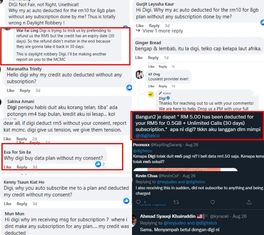 “Is this even right? Can they do that by auto subscribing first and then ask us for a response if we are not interested? How do I even know it’s not a scam message?” the Digi user said. More netizens actually came forward saying that they also had their money deducted for a plan that they did not subscribe to with some claiming that they had been deducted as much as RM10. Many commented on Digi’s Facebook to call them out on their “daylight robbery”.