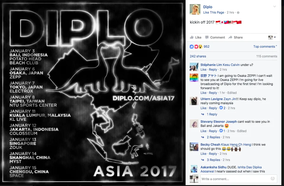 The American DJ/producer just announced some dates and venues for his upcoming Asia tour. As you would expect, the locations include Indonesia, Japan, Taiwan, Singapore, China, and yes, Malaysia!