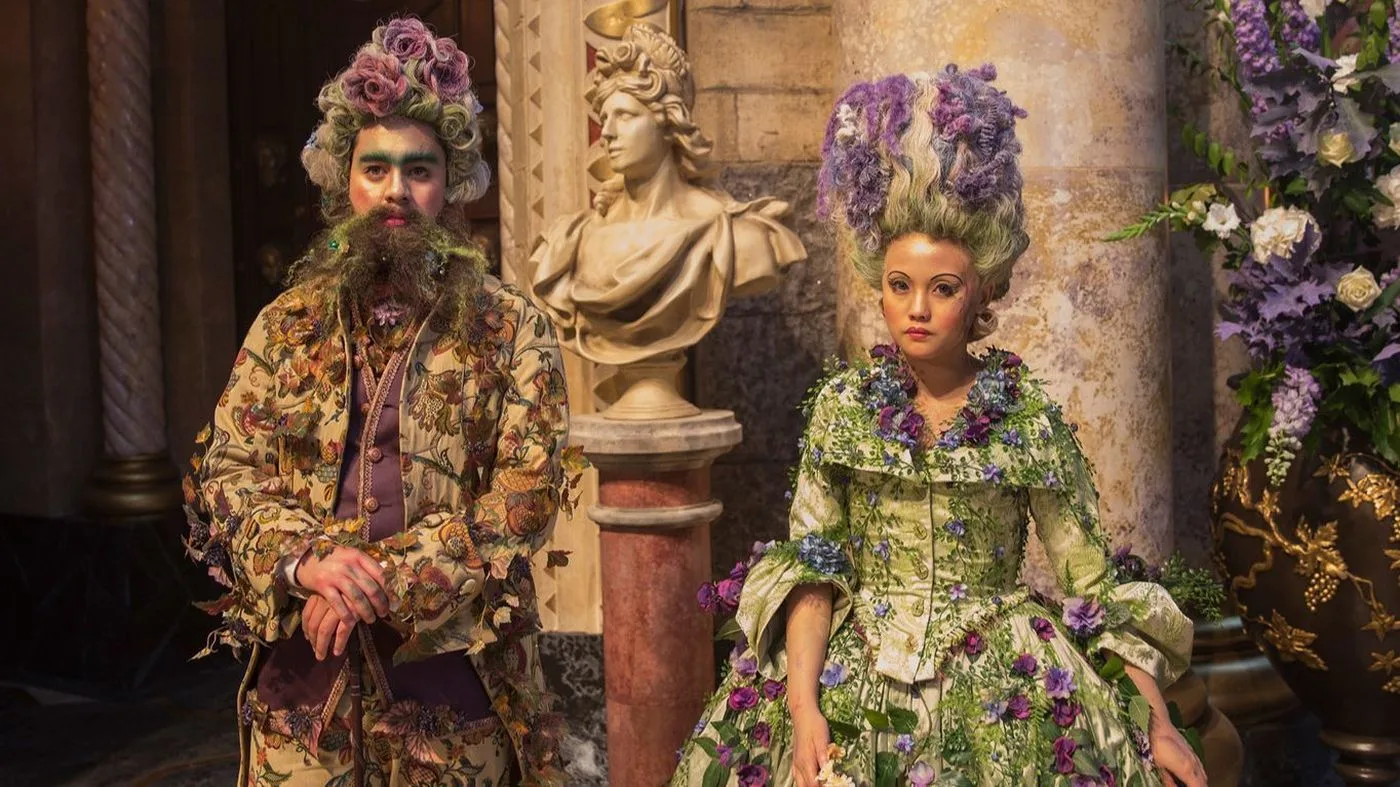 Costume designer Jenny Beavan previously won Oscars for dressing the English past (“A Room with a View”) and the apocalyptic future (“Mad Max: Fury Road”). For this film, she’s marrying the 2 worlds together. For example, Knightley’s Sugar Plum Fairy outfit is embellished with beading, ruching, and layers and layers of ruffles. Of the approximate 1,500 total outfits in the film, Eugenio Derbez’s floral getup also gains attention with its intricate floral pattern complete with three-dimensional leaves.