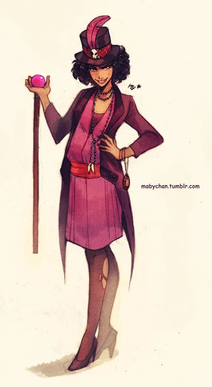 Brought to you by the same person responsible for turning Shan Yu into a Disney Princess is another makeover for Dr. Facilier. As the big bad in “The Princess and the Frog”, this witch doctor is power hungry and doesn’t like it when someone else is ahead in wealth and status. Sticking to the New Orleans theme, this recreation sees Princess Facilier sporting a similar outfit with a necklace of Mardi Gras beads and a wicked grin.