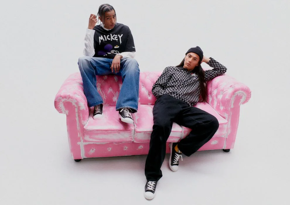 Inspired by Andrew’s love of Disney and street art culture, the collection has a relaxed feel and boasts several Disney characters, all-over prints, and Andrew’s signature symbols, such as the ghost and the flying egg.