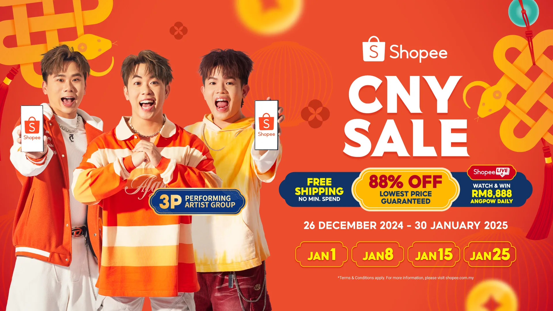 Shopee proudly presents the sensational performing artist group 3P as the brand ambassadors for the Shopee CNY Sale! Join the talented trio – Danny Lee, Caven Tang and Kevin Ong – on Shopee Live this 14th and 15th January at 8pm for an unforgettable festive celebration filled with electrifying dance performances, interactive game shows, thrilling giveaways, and exclusive CNY deals.