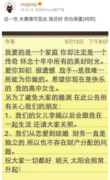 Wong and Li married in 2005 and later had a daughter together whom they named Li Yan (李嫣). However on 13th September 2013, the couple officially announced their divorce. Wong left a message on Weibo saying, “This is the end of this life for husband and wife. I’m fine, you (should also) take care.”