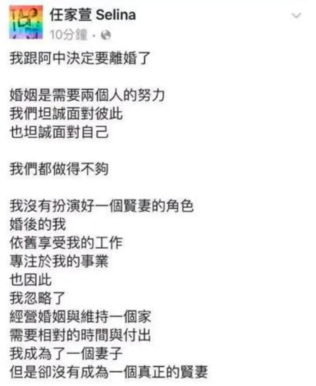 Fans only knew that Selina was dating someone during a concert in Taipei on 29th May 2010. It was announced then that Lawyer Richard Chang had asked Selina to be his girlfriend. Even after Selina was badly burned by fire, Chang stayed by her side, supporting and comforting her. They married in 2011, but four years later, the two officially divorced. Selina explained they did not make the decision overnight. She stated on Facebook that the two of them did not manage their marriage well, nor did she play the role of a good wife. “I became a wife, but I didn’t become a very good wife,” she wrote.