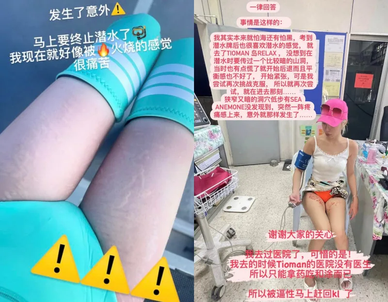 On 16th May, DJ Leina Lei shared that she had gone diving while at Pulau Tioman. However, during her diving trip, they had to squeeze through a dark cave. “(The) narrow and dark cave had sea anemone. I didn’t notice it, but (I was) suddenly in pain,” Leina explained. She added in her socials later that she had stopped diving immediately. “The burning sensation is very painful,” she stated.