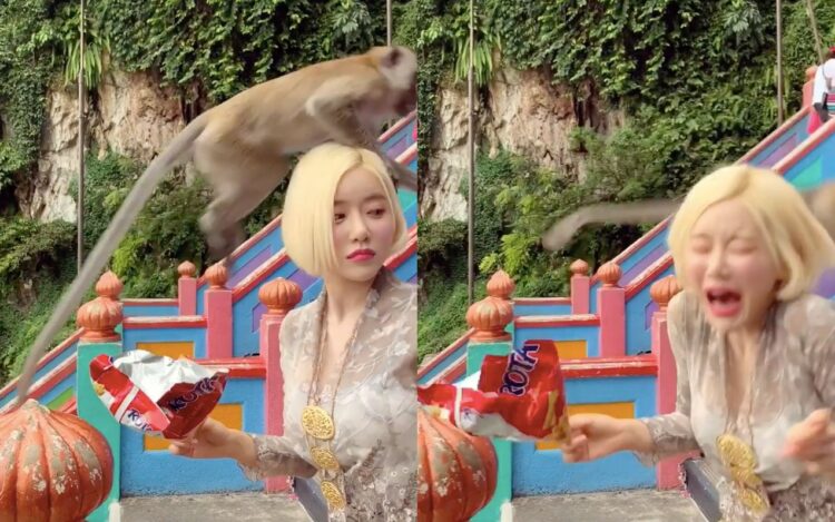 Dressed in a baju kebaya, Soda had quite the experience when visiting Batu Caves. She posted a video compilation of her feeding some monkeys with snacks and bananas. There were a lot of freaking out and screaming in the clip. As the Asian beauty confessed, “My throat is hurting so bad, since I screamed a lot.”