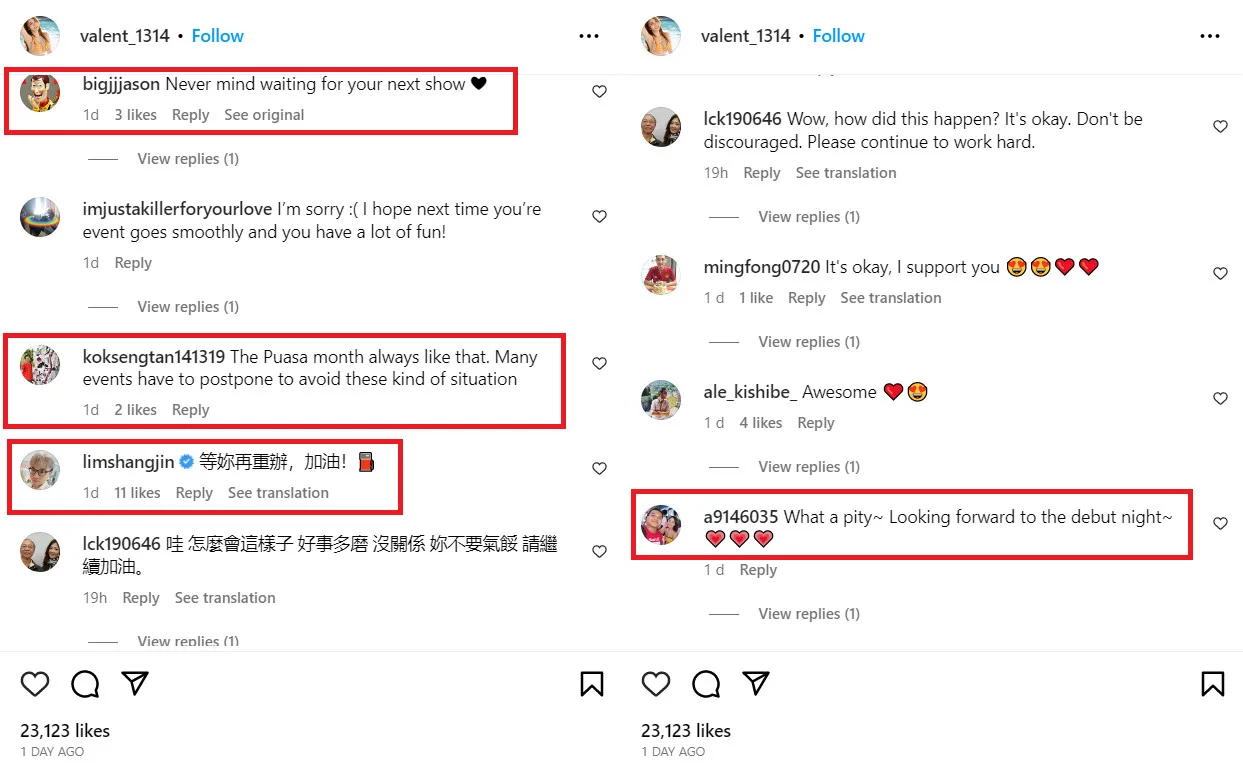 Fans and fellow creators, like Lim Shang Jin, were quick to cheer her up, reassuring Valent that they were still supportive of her debut. Several wished her well for her next show, hoping she would have fun. One even explained the raid, attributing it to the holy month of Ramadan. “Many events have to postpone to avoid these kinds of situations,” they added.