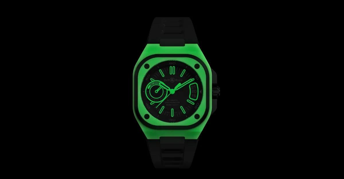 Enter the BR-X5 GREEN LUM, a masterpiece that pushes the boundaries with LM3D, an innovative composite material that elevates the luminescent game to a whole new level. This 500-piece limited edition concept series breaks barriers, introducing a mesmerizing feature: a luminous 41mm case crafted from LM3D, an exclusive composite material by Bell & Ross. The BR-X5 GREEN LUM, a testament to Bell & Ross’s innovation, marries sophistication with innovation, marking its territory in the high-end line with a radiant glow that’s as unique as it is daring.