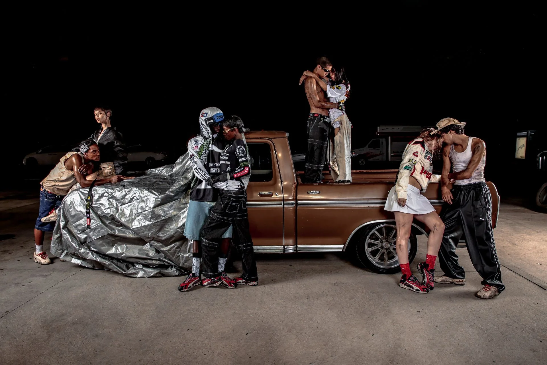 PUMA and music artist A$AP Rocky unveiled their highly-anticipated collection featuring footwear, apparel, and accessories. Central to this release is the re-engineered Inhale Distressed sneaker, inspired by car mechanics, showcasing a distressed treatment and custom embroidery. The collection includes standout pieces such as a tank top, knee pad pants, and a zip polo, all designed with authentic racing details and a worn-in look.