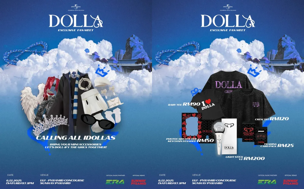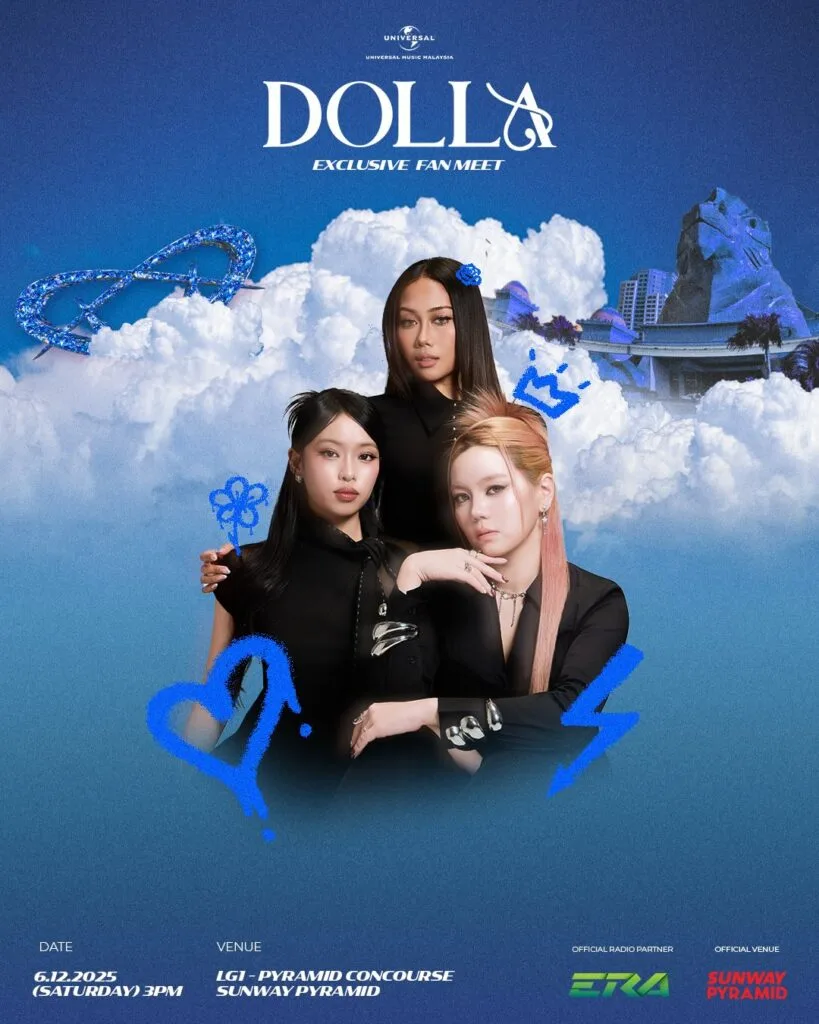 DOLLA recently announced an exclusive fan meet, happening at the Pyramid Concourse at Sunway Pyramid on 6th December 2025. According to the announcement, the event will feature an appearance from the trio and an exclusive merchandise sale. The fan meet is free, but RSVP is open to those who purchased tickets for the “Good Girl Gone Bad” concert in Kuala Lumpur or preordered official DOLLA merchandise through their website.