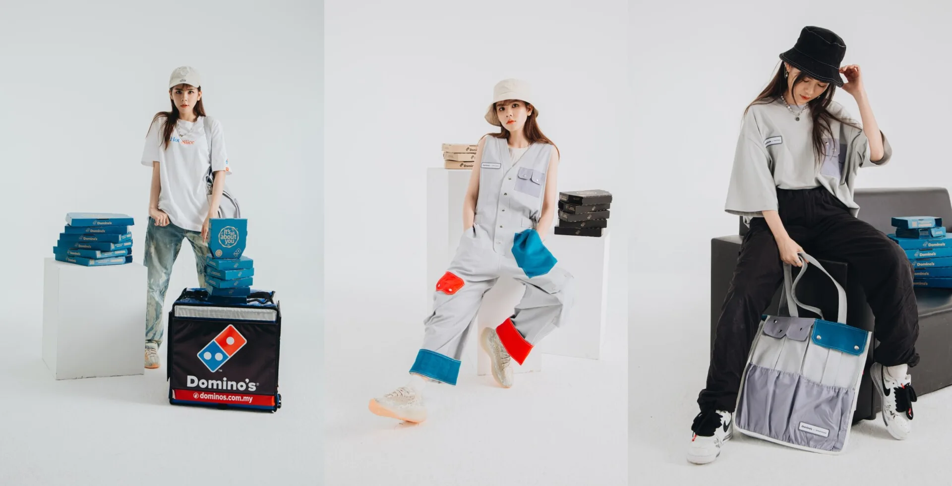 Other than that, the collection features distinctive designs of contemporary streetwear style by imbuing creativity with Domino’s entertaining culture and attitude. Plus, the ultra-sized designs measure up to the highlight of large savings and pockets with a finishing touch of Domino’s theme and colours. The Ultrapocket series also comes with oversized T-shirts, baggy pants, jackets, limited edition overalls, as well as accessories such as tote bags.