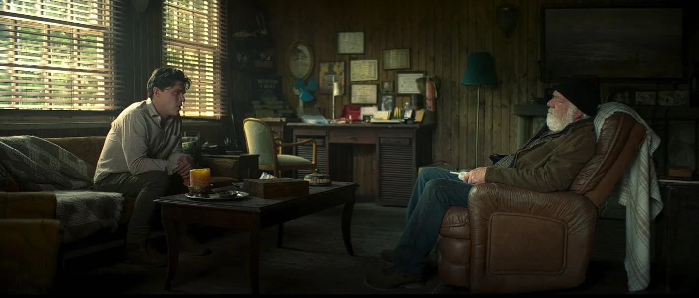 While she stands precariously, a man arrives at the summit, seemingly there to vent off his personal plagues. He initially attempts to coax Iris off the cliff, asking about the reason she’s there. He introduces himself as Richard (Finn Witrock), asking her for her name. However, seeing as she’s reluctant to open up, he pivots and talks about his struggles with the death of his wife in a car crash.