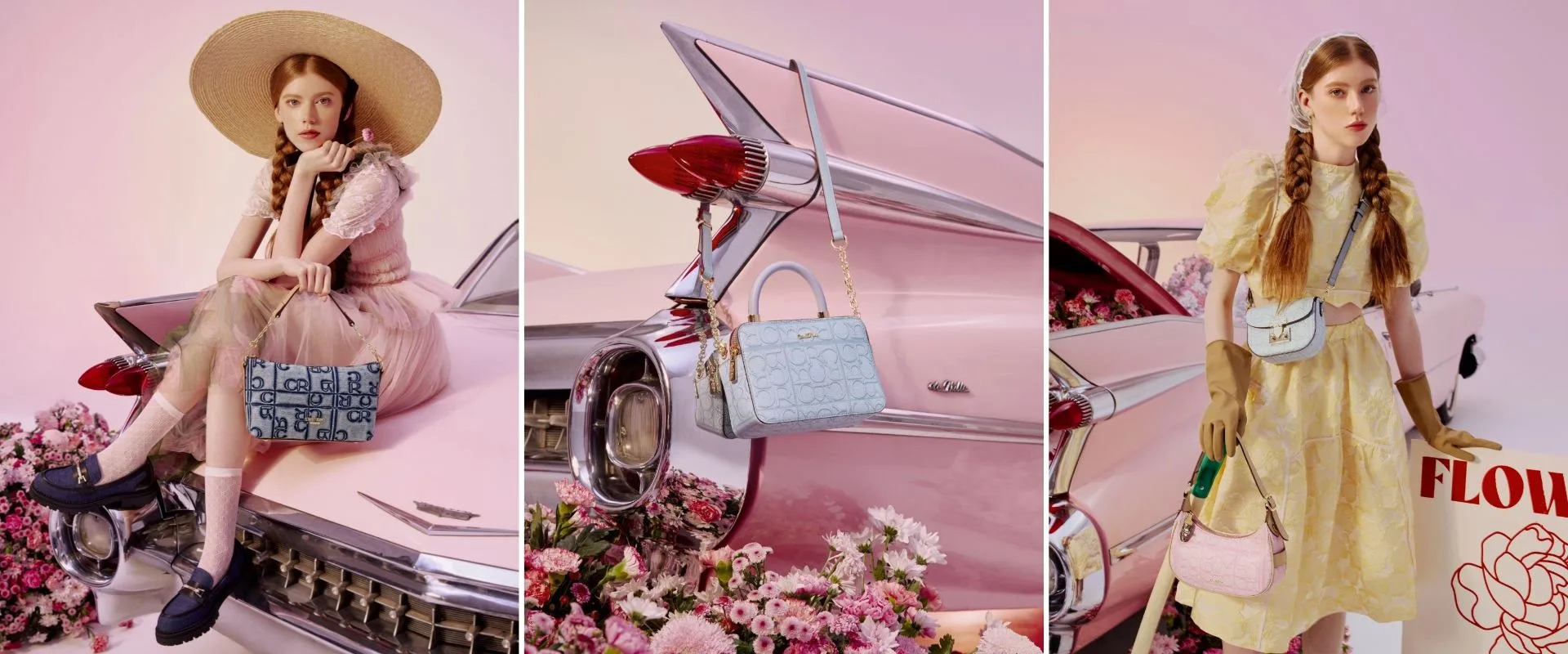 At the heart of The Mythical Garden blooms a captivating collection of handbags, inspired by the gentle curves of petals and the dreamy hues of secret gardens. Designed for the modern woman, these bags marry functionality with enchanting details, featuring elegant top-handle styles and chic crossbodies in soft pinks, blues, and warm yellows, all accented with subtle touches of gold for a hint of luxury.