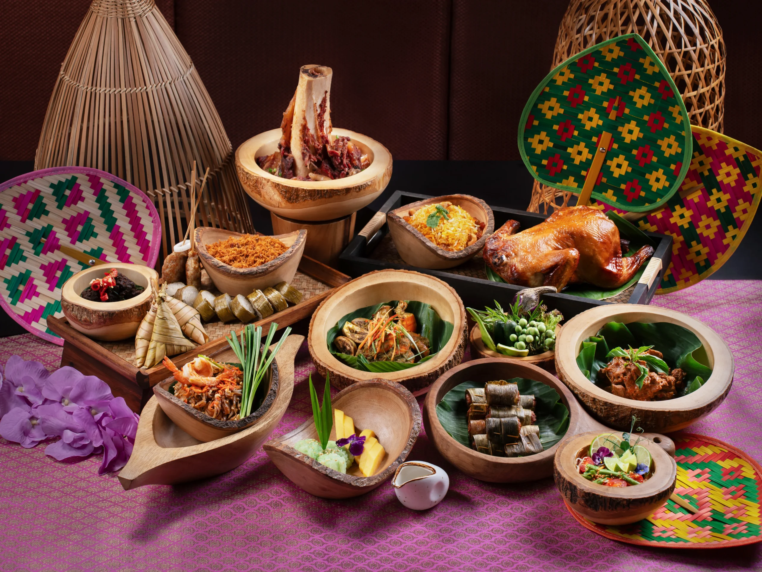 Celebrate the spirit of Raya with a comforting selection of local favourites, including Lemang and Ketupat Palas, Serunding Ayam, Traditional Chicken Satay with Condiments, Ayam Masak Merah, Rendang Daging Tok, Sambal Tumis Udang Petai, Sayur Lemak Lodeh and Nasi Minyak Beras Wangi.