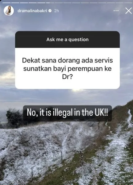 “Do they provide circumcision service for female babies at the country?” the netizen enquired. Dr. Amalina then responded, “No, it is illegal in the UK!” Another individual also asked on whether the procedure is allowed for males, to which she replied, “Yes, it is (allowed). Male circumcision can be done in hospitals.”