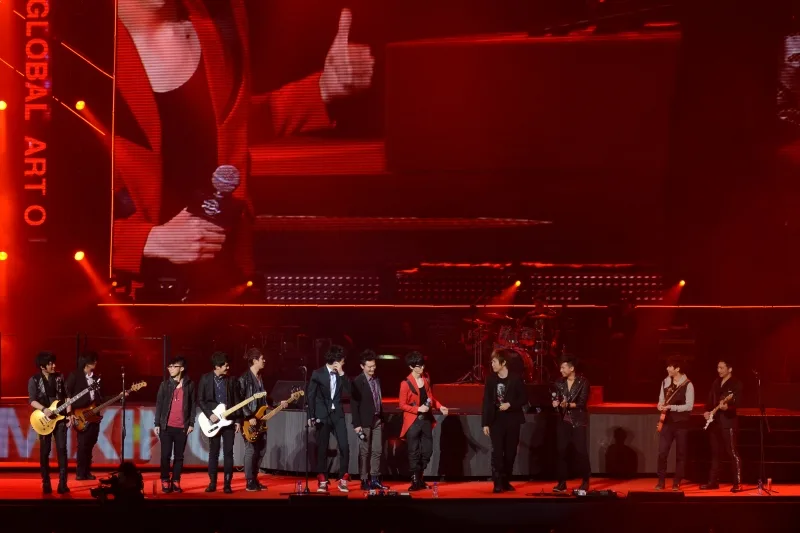 Fan excitement further heightened with the appearance of Mayday, a rock band whose popularity transcends the Asian region. Beginning with their anthem of chasing a dream “Sun Wukong”(孙悟空), they brought the evening to a climax. Included in their song lineup was the upbeat “DNA”.