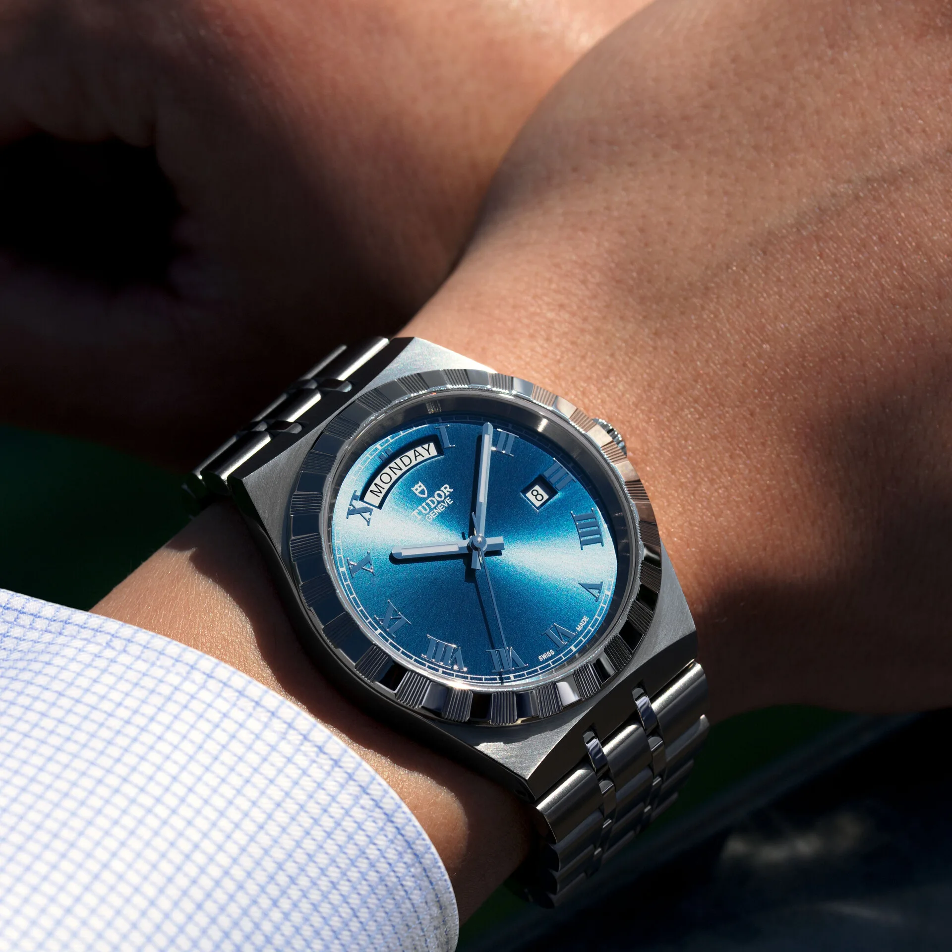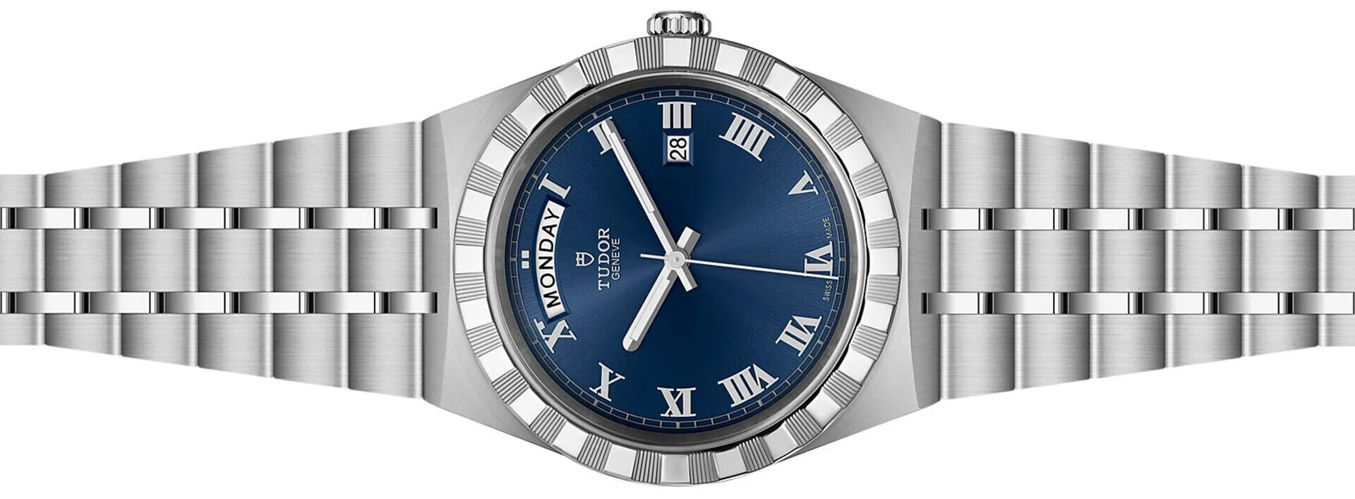 Available in stainless steel, or with alternating links in stainless steel and yellow gold, the models in this range cater to every taste owing to the intricacy of their finish. Available in four sizes, TUDOR Royal is designed to fit any wrist size. The 41 mm version is particularly distinctive as its mechanical movement displays the day at the same time as the date.