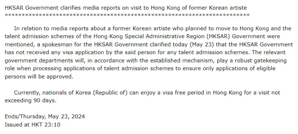 On a related note, there were previous reports that Seungri was looking to relocate to Hong Kong using a specific visa and had planned to open another club in the country. The Hong Kong government then issued a statement denying the rumours. They said the immigration department has never received a visa application from the former BIGBANG (빅뱅) member, adding that the government will continue to ensure strict visa approvals.