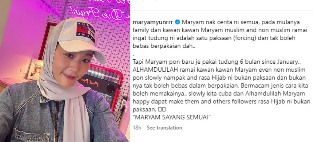 Yesterday (Monday, 3rd July), Maryam posted a series of photos of herself dining in at a FowlBoys restaurant in Kuala Lumpur. However, in her captions, she addressed the assumptions and speculations about being forced to wear the hijab. She wrote, “Some of my family members and friends (Muslims and non-Muslims) thought wearing a hijab was something that [Muslim women] are forced to do and that you couldn’t dress freely”.